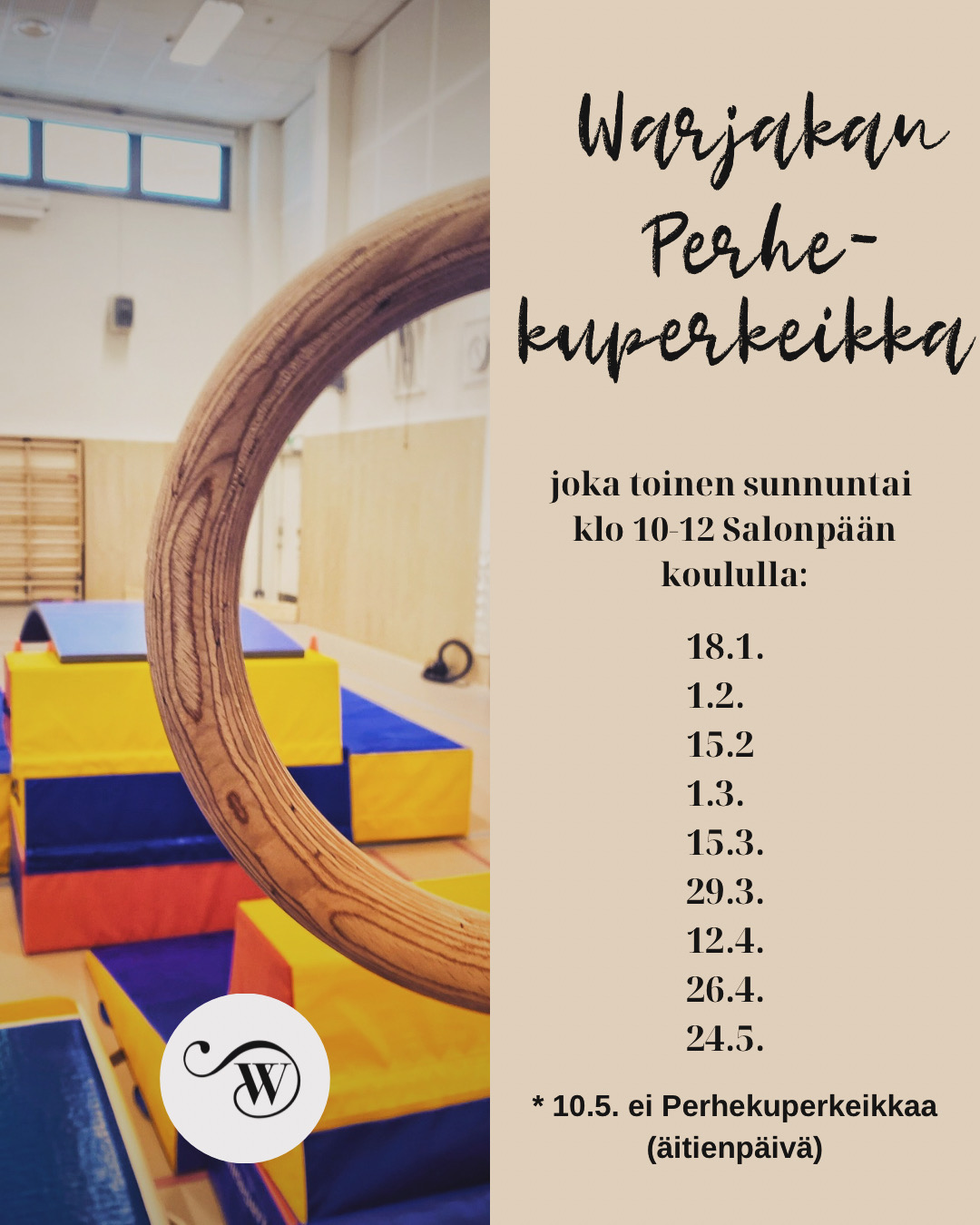 Perhekuperkeikka 18.1. alkaen joka toinen sunnuntai Salonpään koulun salissa klo 10-12 (käynti F -ovesta).